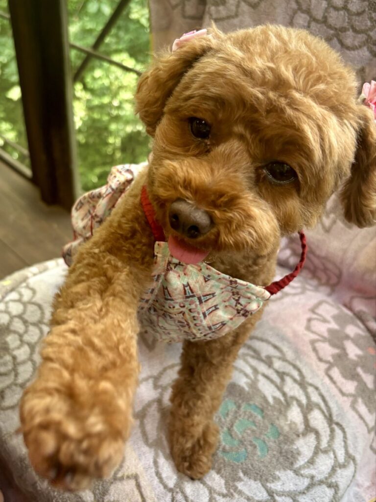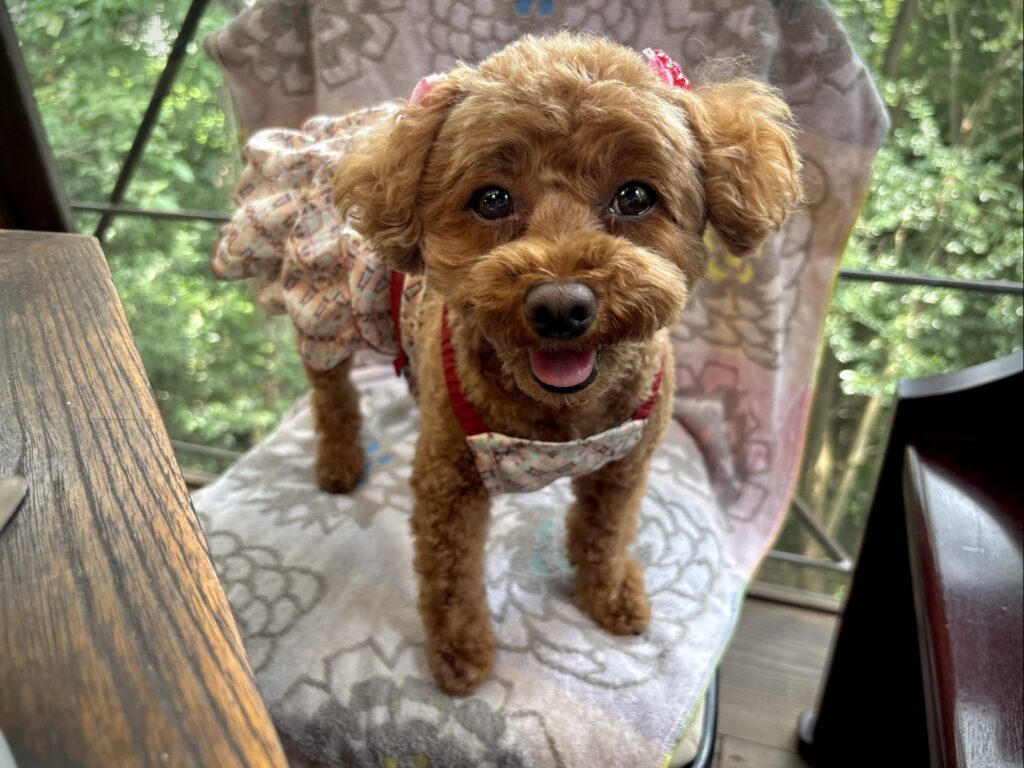 スタッフさんに可愛いと声をかけていただき、大興奮のこむぎ