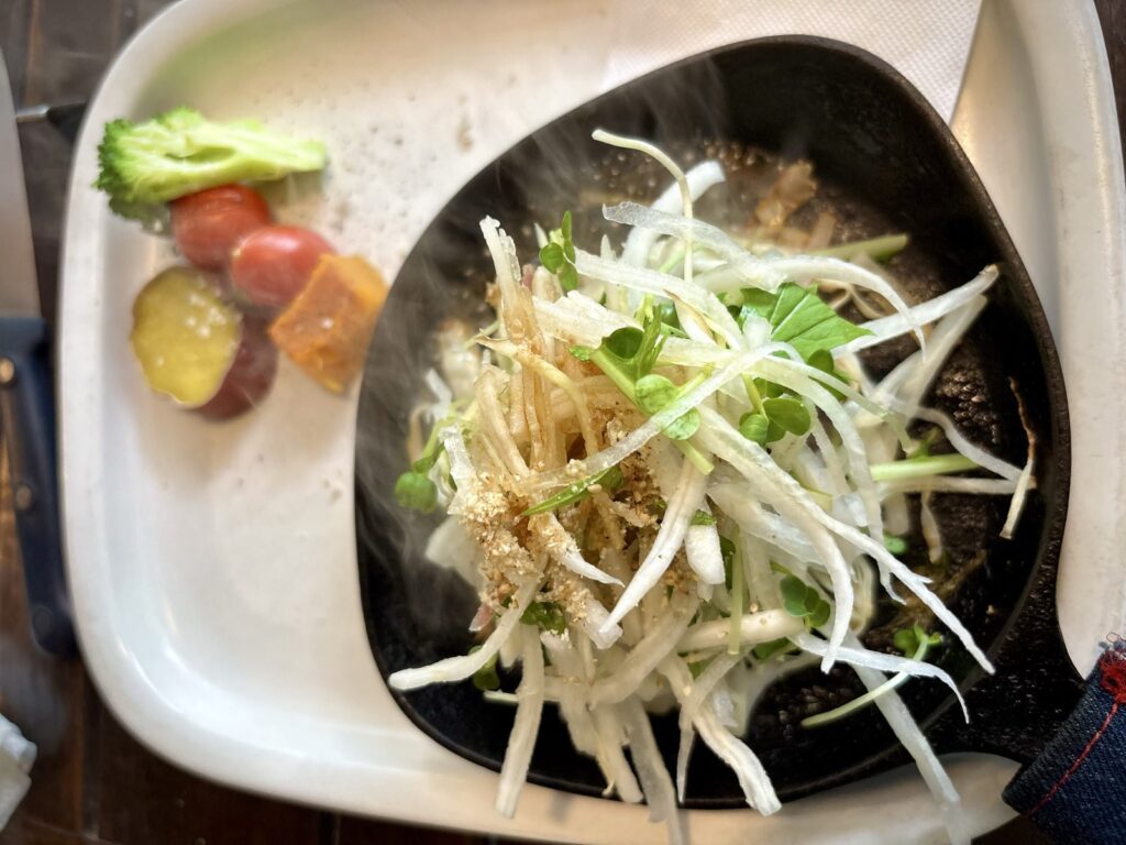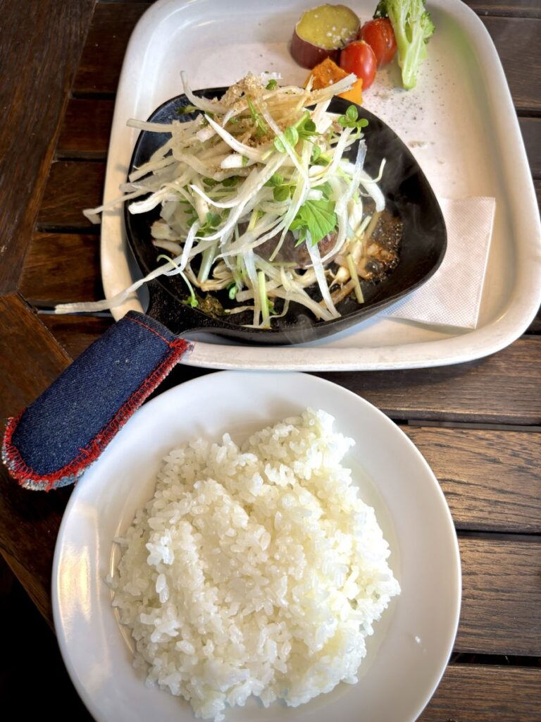 続いて大根、カイワレ大根、水菜がたっぷりのったハンバーグ