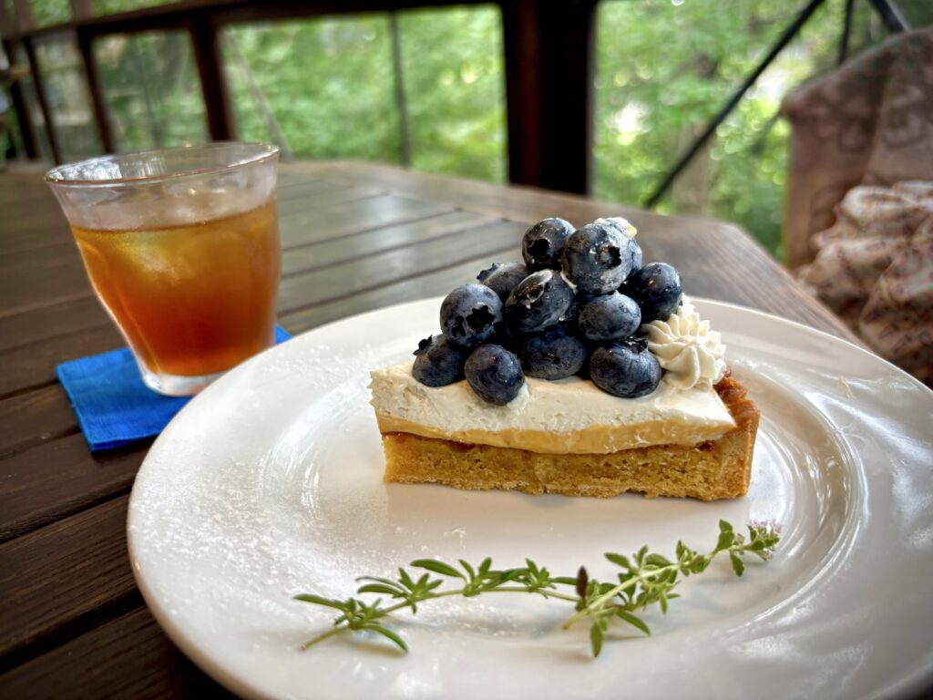 宝石のように輝くブルーベリーがたっぷりのっている贅沢なタルト