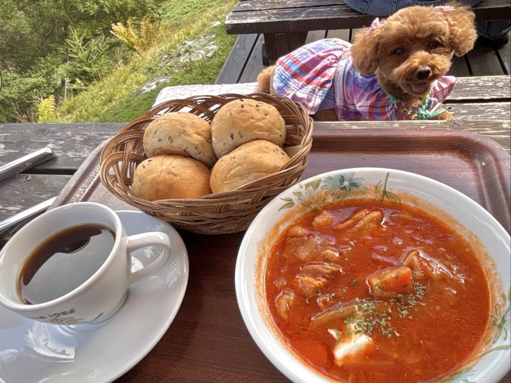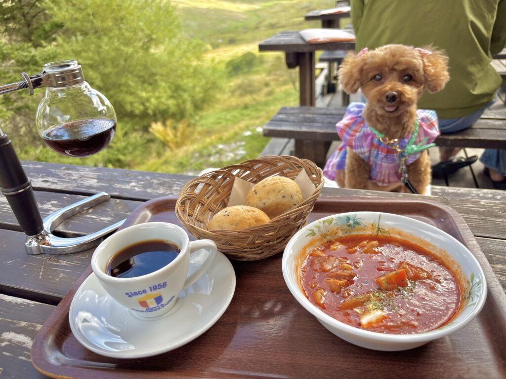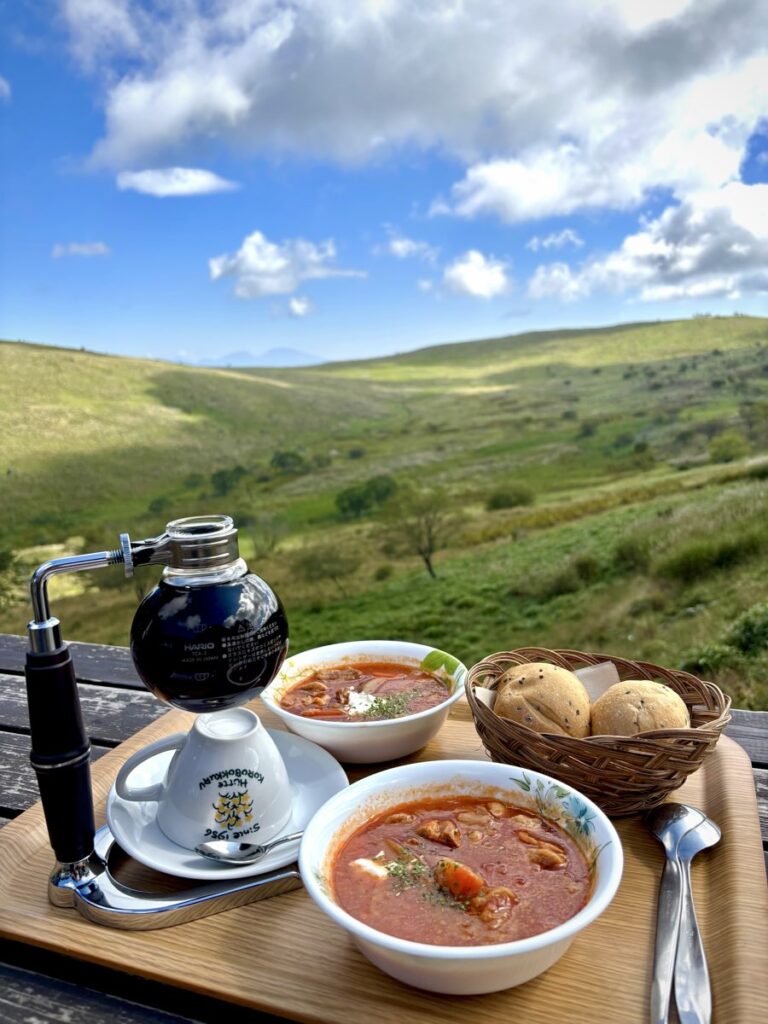 いただいたのは、看板メニューのボルシチとサイフォンコーヒーと雄大な絶景