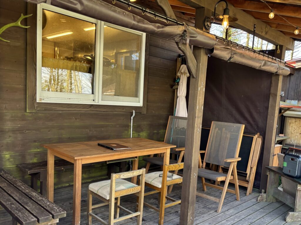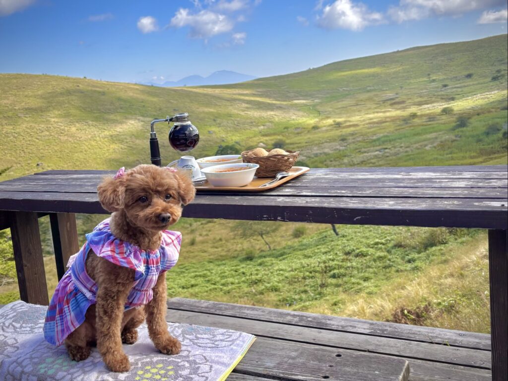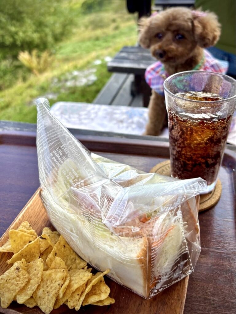 - わんこ連れは抱っこして店内を通り、テラス席へ