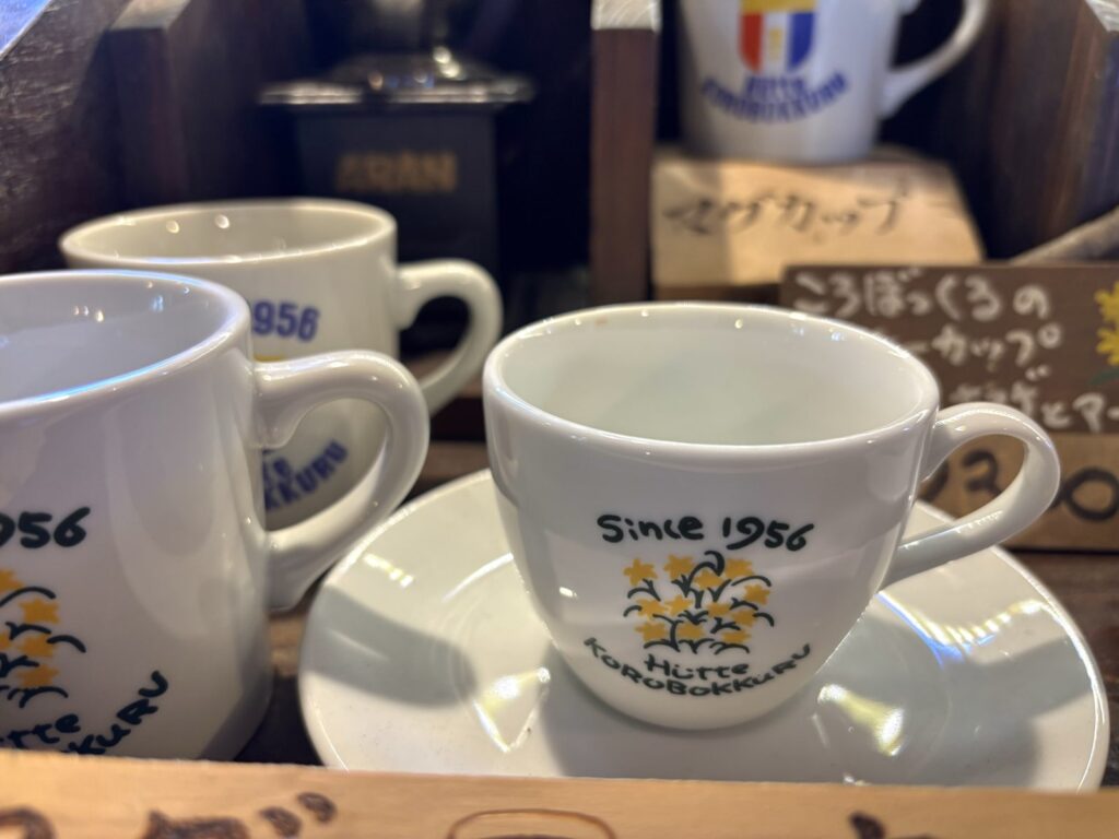 サイフォンで淹れたコーヒー、ニッコウキスゲが描かれた愛いカップでいただきます