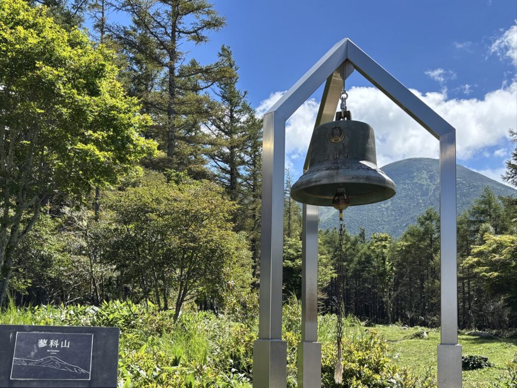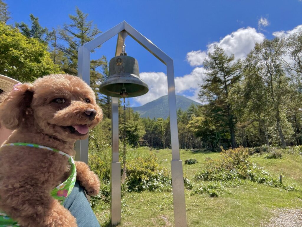 蓼科山を眺めながらこむぎと鐘を鳴らして、そろそろ帰り支度