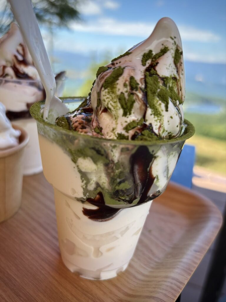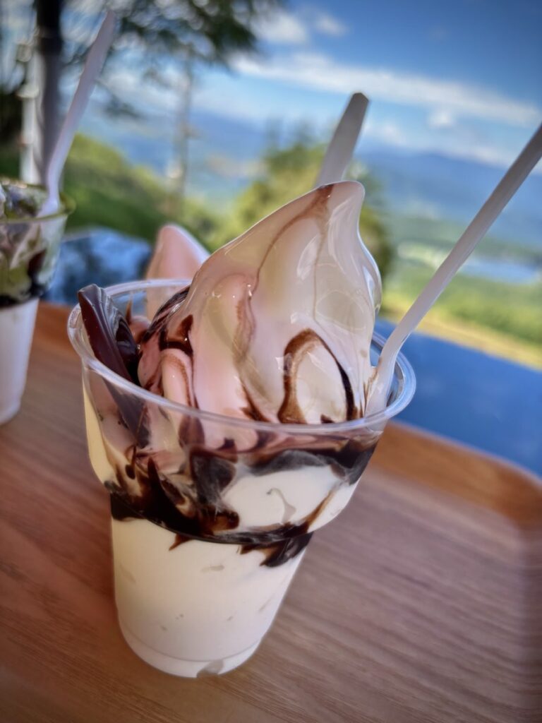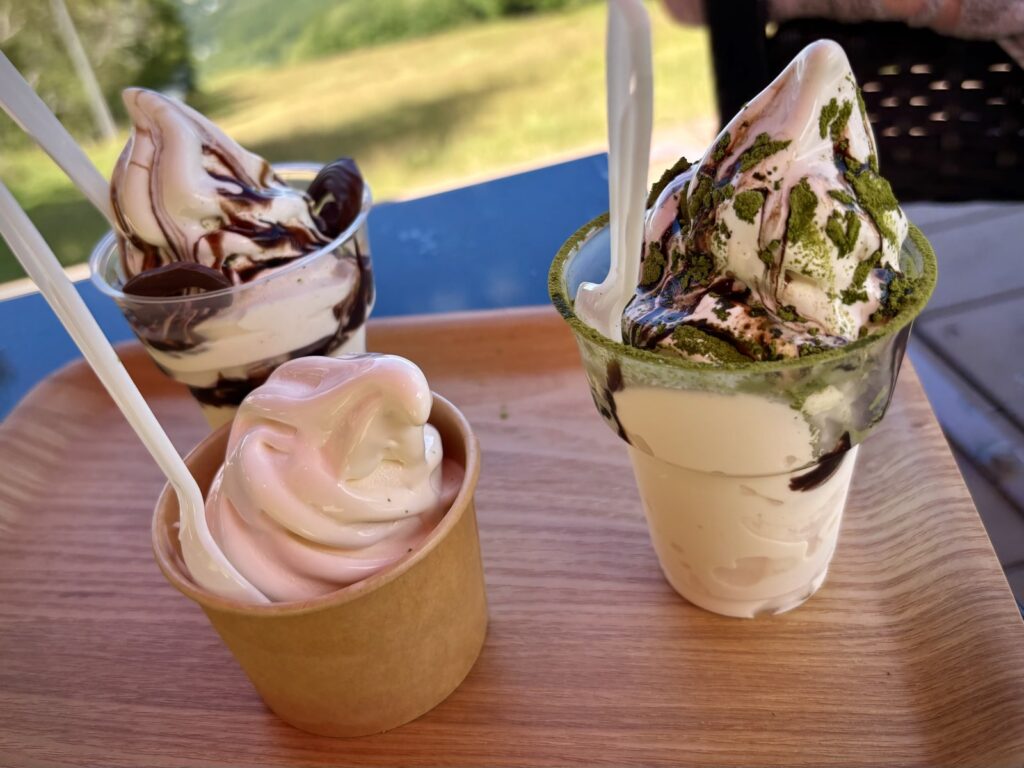 ゴンドラを降りて目の前にあるカフェでアイスタイム