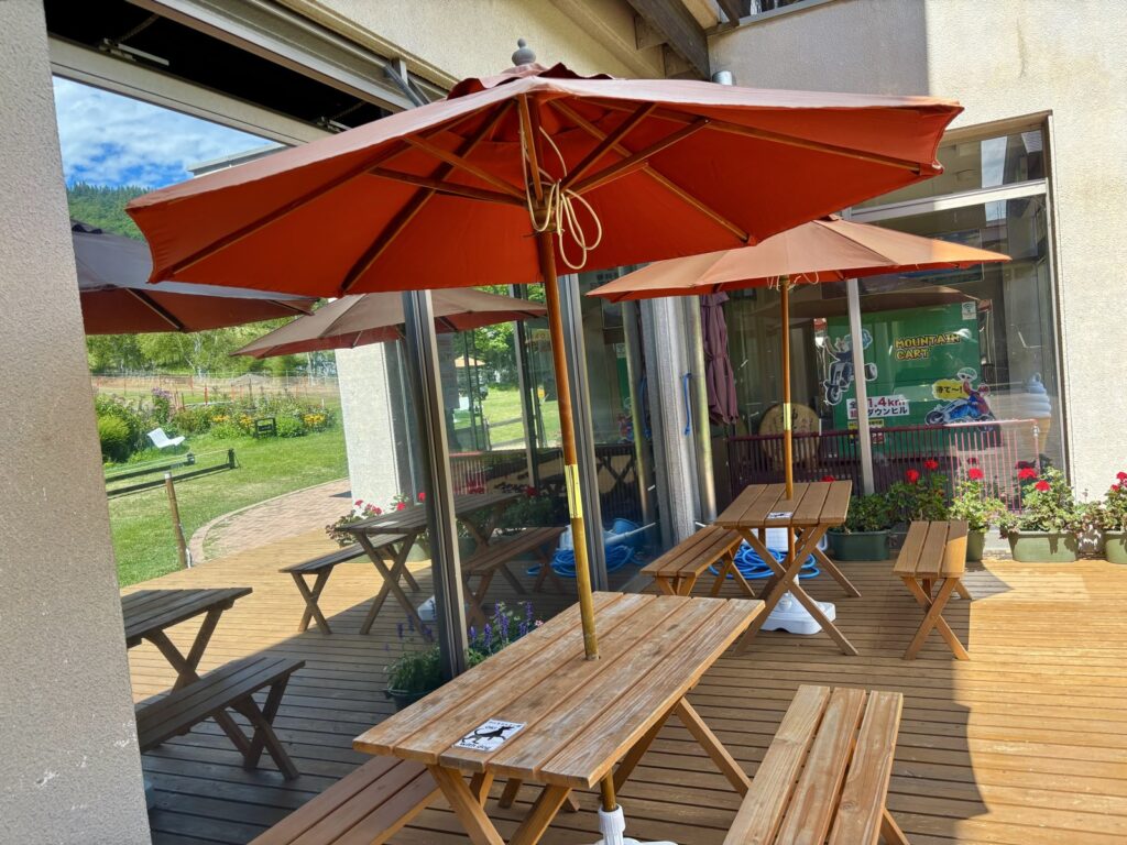 ドッグラン前のレストランはペット同伴OKのテラス席もありました