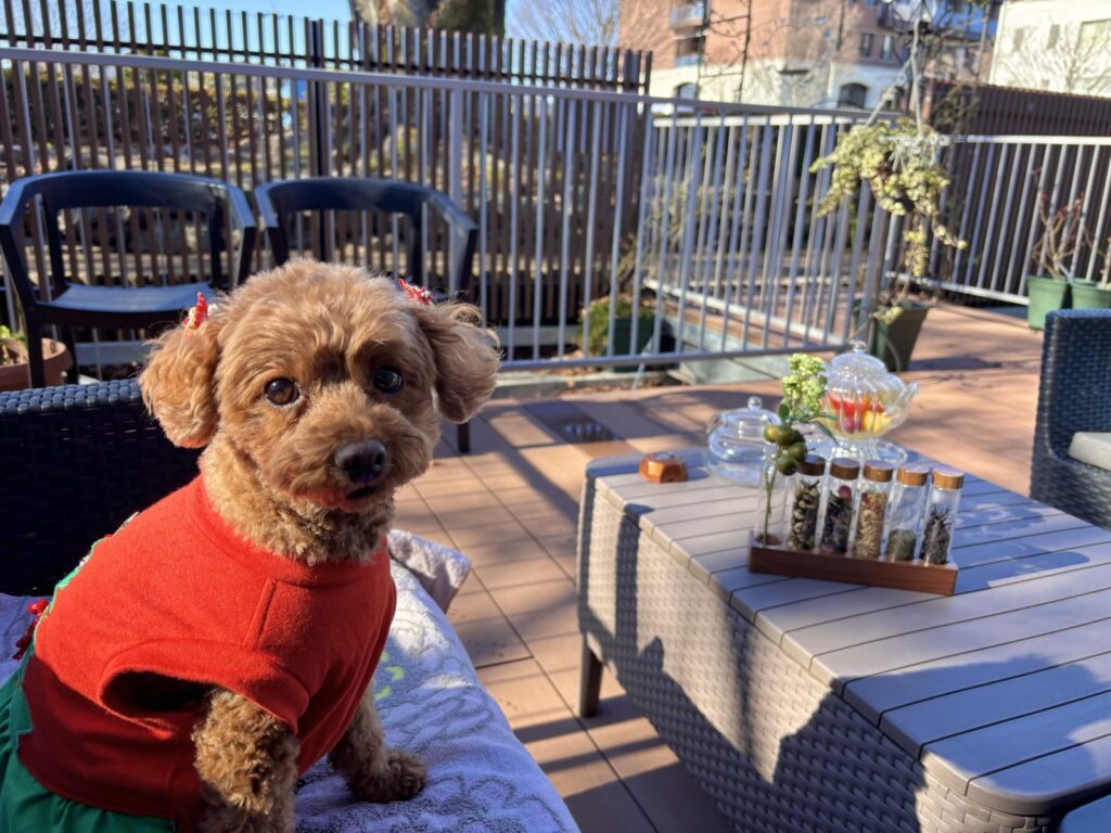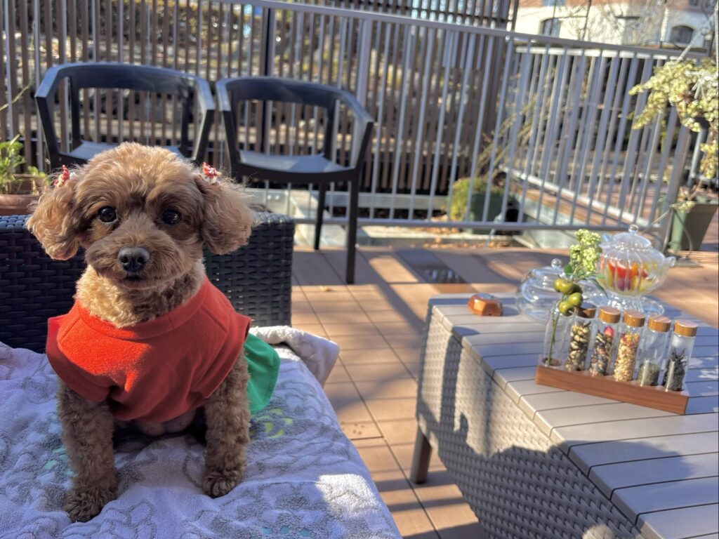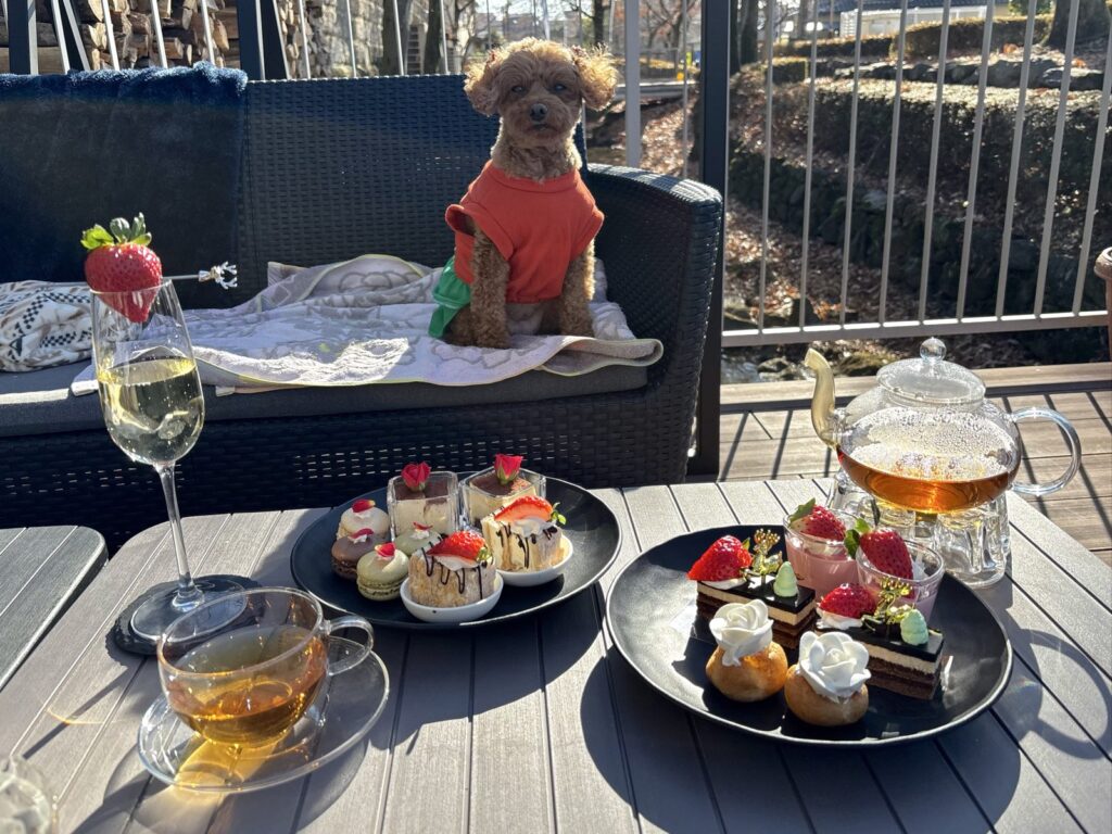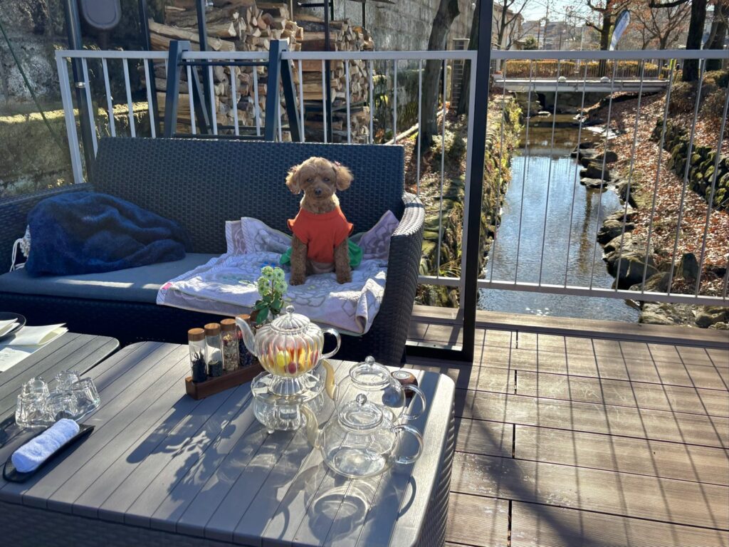 犬は店内に入れないため、こむぎと一緒にテラス席へ