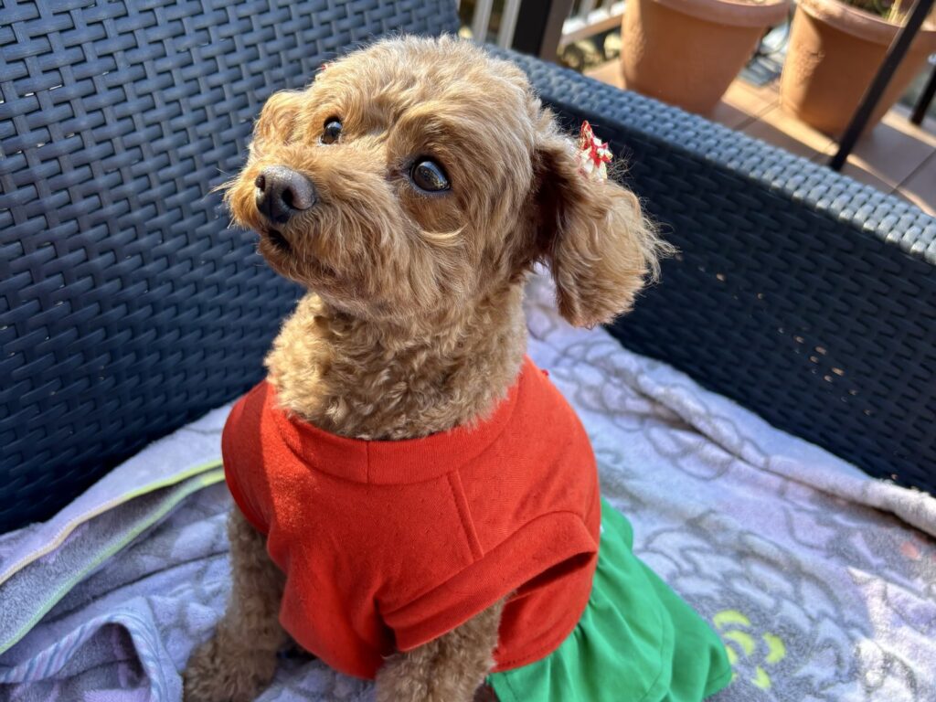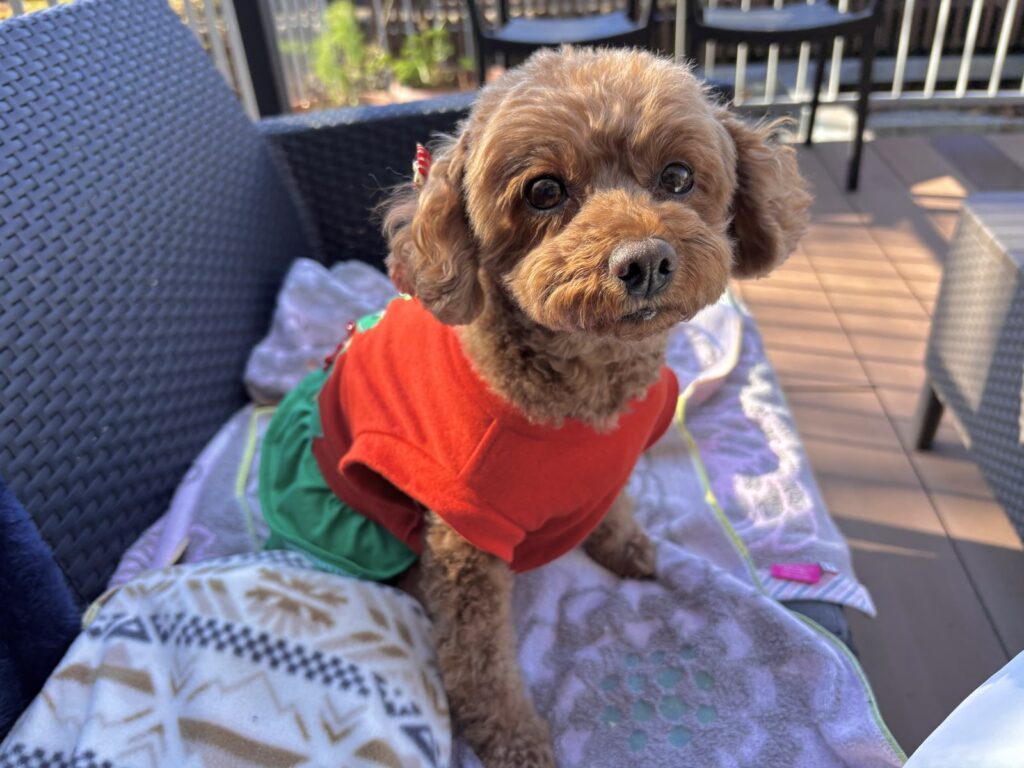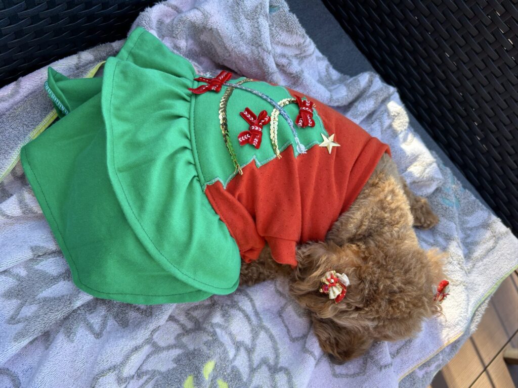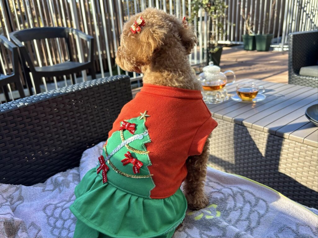こむぎもクリスマスの装い、とっても可愛いね