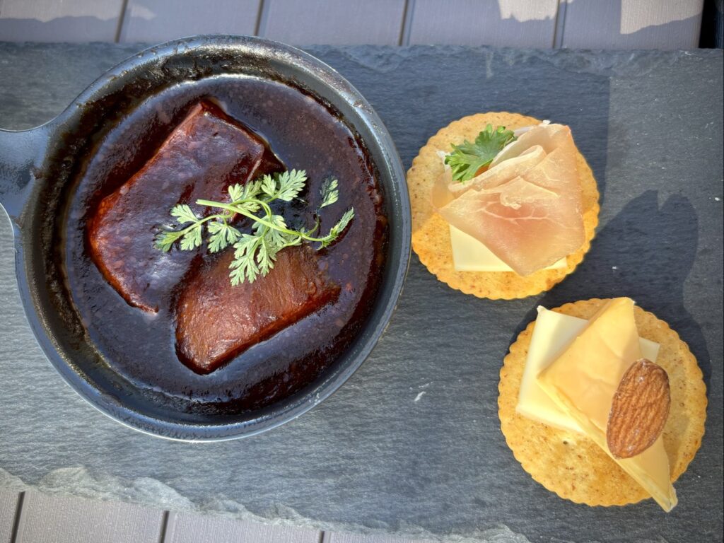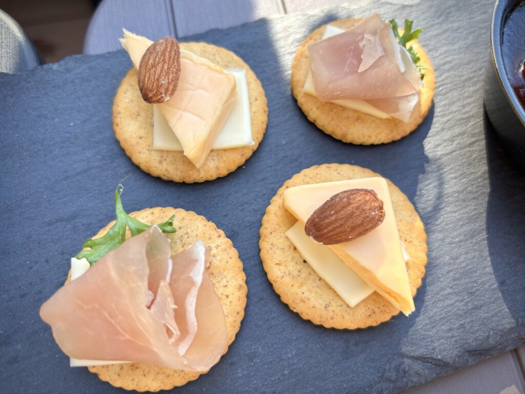 2種類のカナッペはアーモンドチーズと生ハム