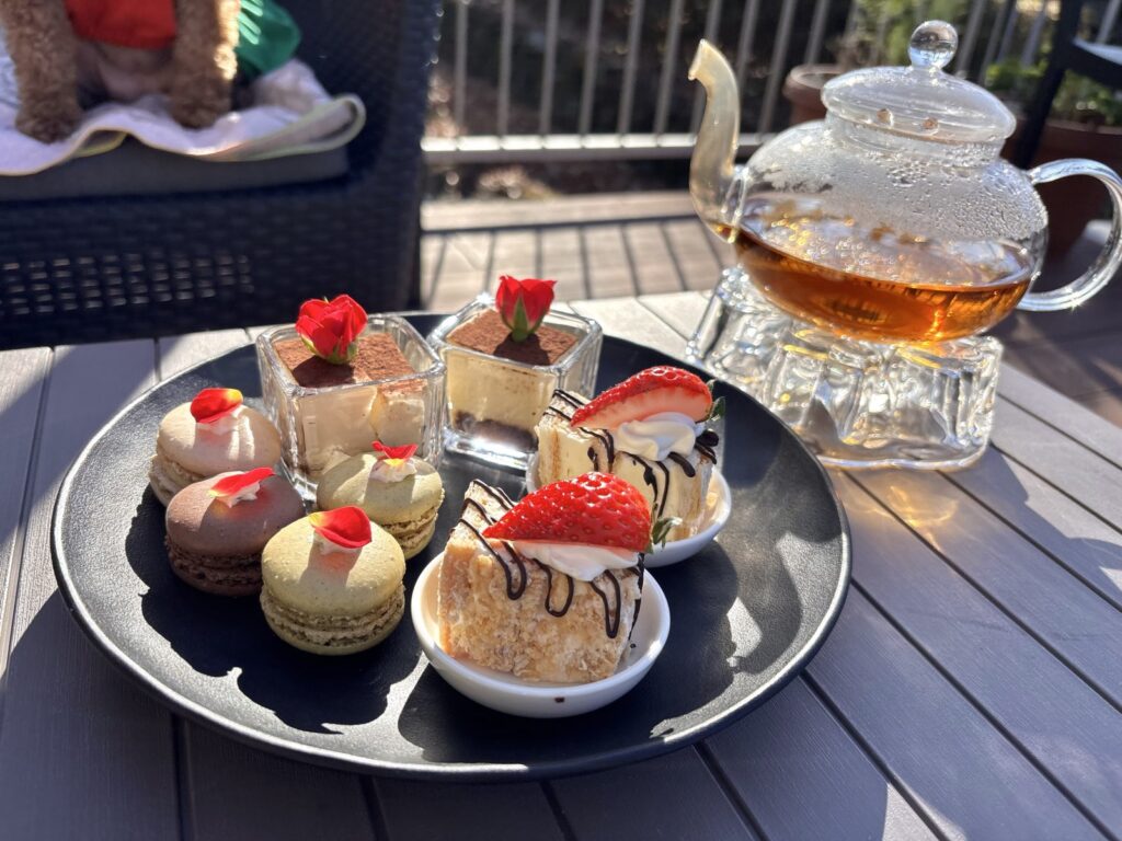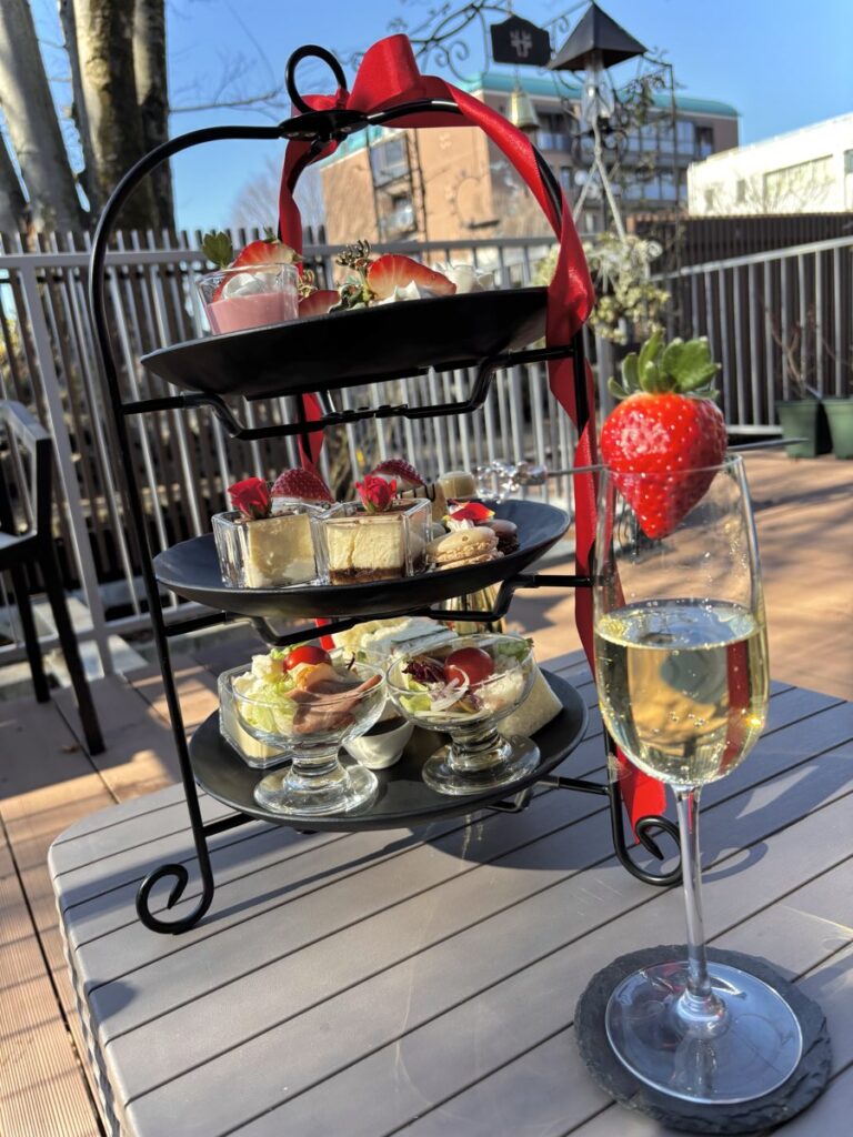 アフタヌーンティーセットが運ばれてきて、一気に華やかな雰囲気になります