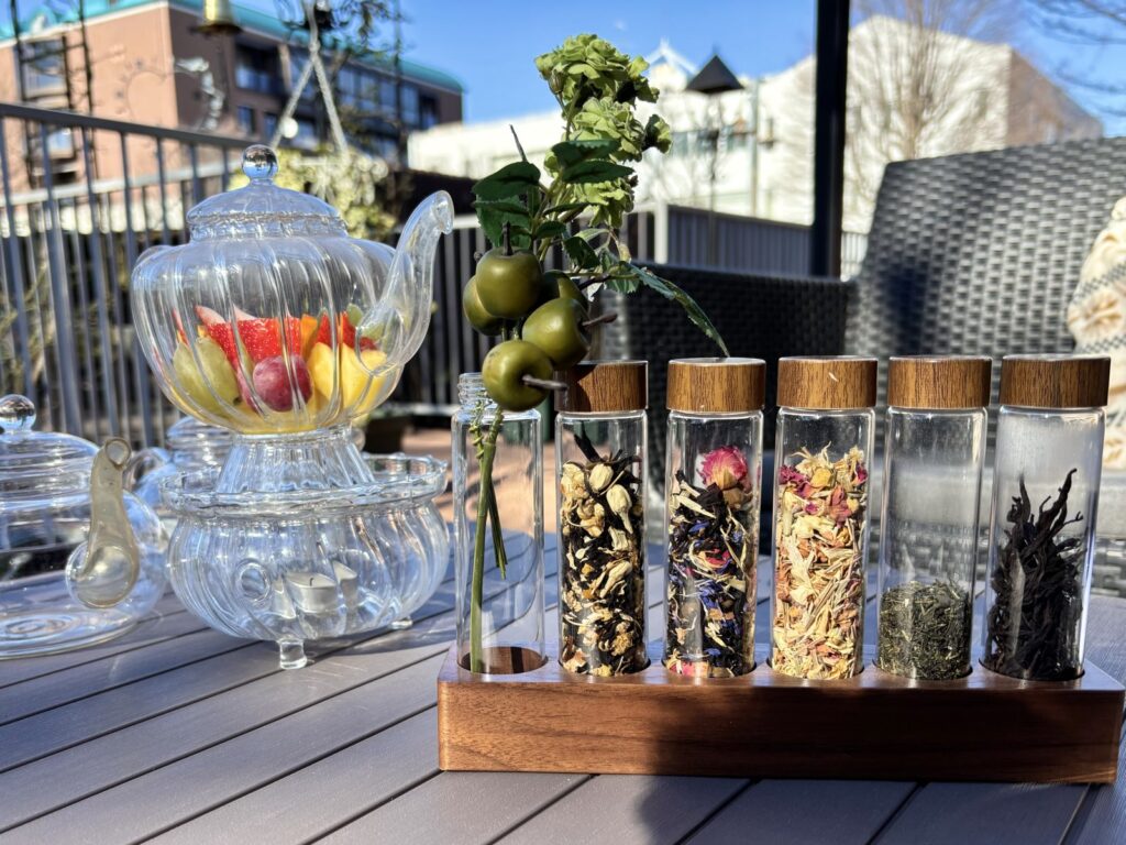 アフタヌーンティーのお茶は、サンプルが置かれており、香りを確かめながら選べるのがうれしいです