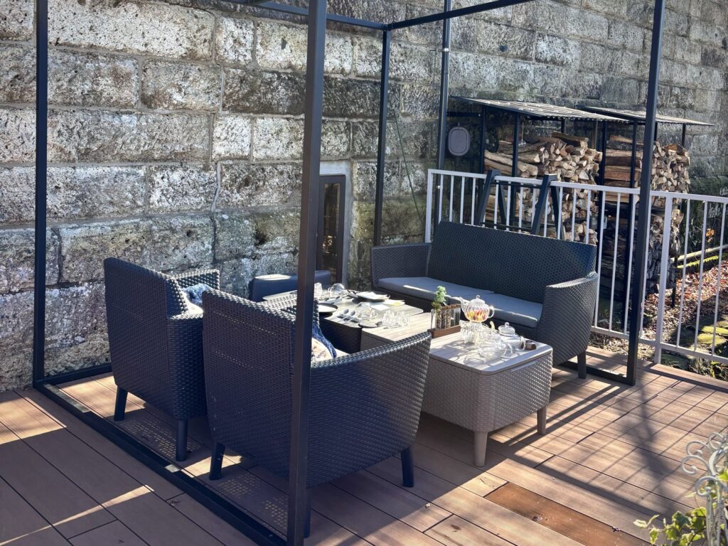 テラス席へ到着