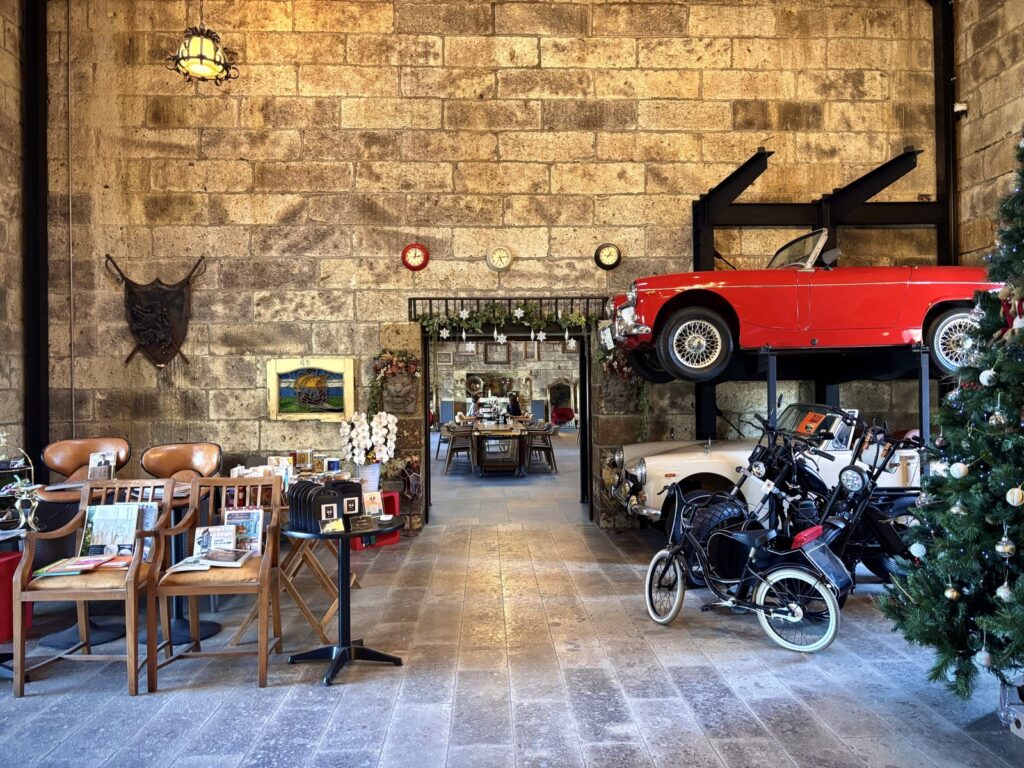 広々とした店内にクラシックカーが展示されていており、ひときわ存在感を放っています
