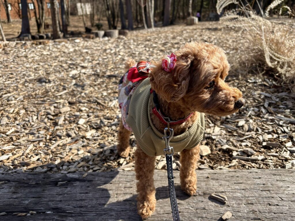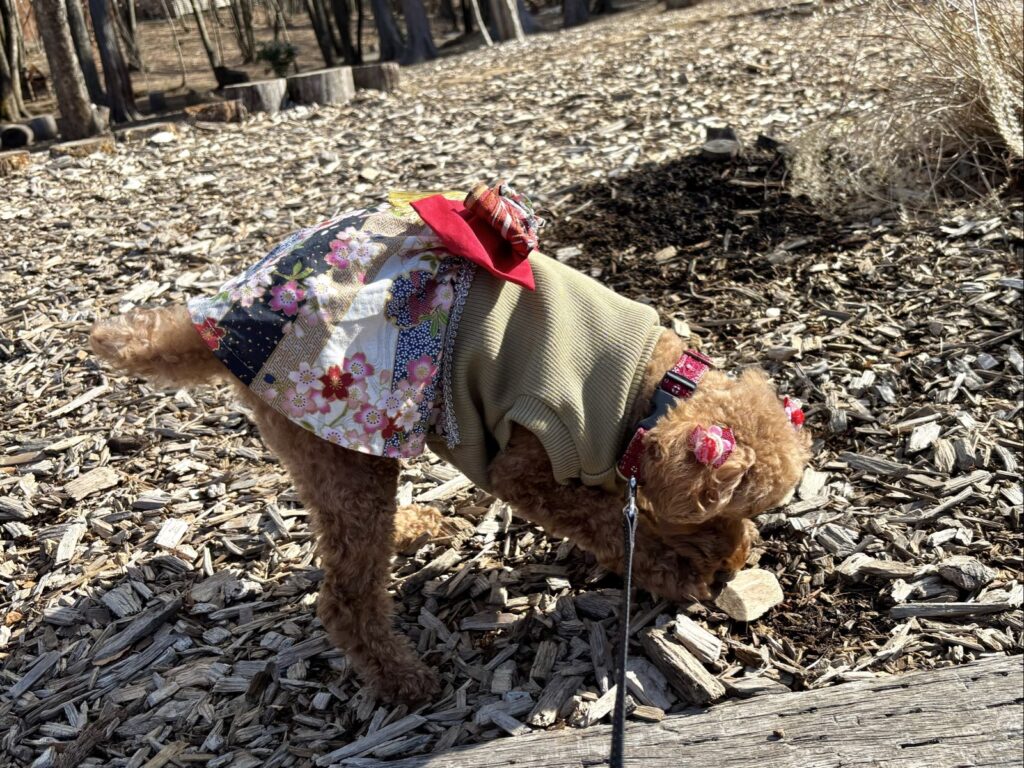 ウッドチップが敷き詰められていて、こむぎも歩きやすそう