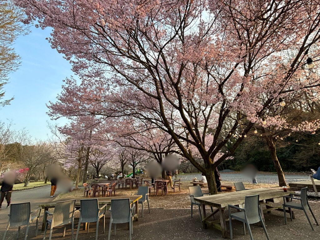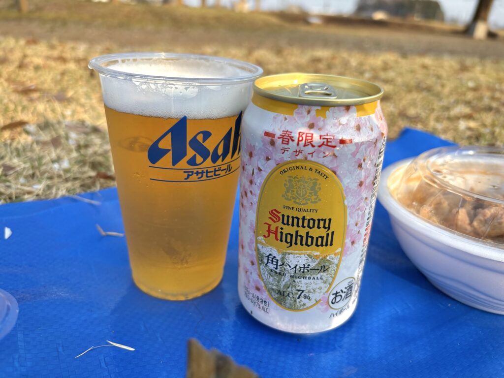 車にビニールシートがあったので、桜のそばでお花見スタート
