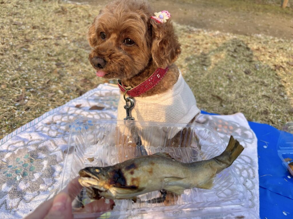こむぎも大好物の鮎を食べながら、満開の桜を楽しんでくれたかな?